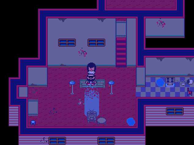 Suba a escada de ferro no Lobby. No topo, a cabeça através da porta atrás do rastro de sangue. Isto leva ao quarto vazio. Enquanto este quarto não é infinita, que faz malha em todas as direções. Para o norte é uma imagem de Marty sorrindo, vestindo um terno, e que mostra um coração quando interagiu com. Isso parece mostrar o lado de Marty que fará qualquer coisa para conseguir o que quer. Alternativamente, poderia representar um melhor momento, quando ele era gentil com Lisa. Várias imagens deste tipo de Marty pode ser encontrada aqui, e há até mesmo um vaso sanitário que Lisa pode usar sem vômitos.
